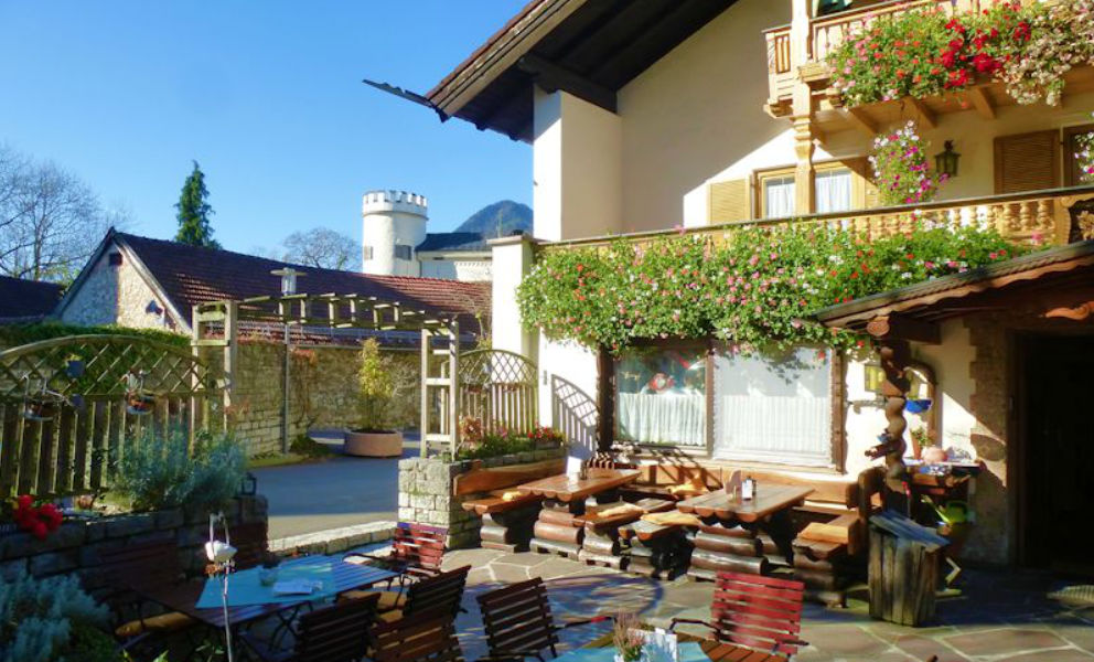 In unserem Biergarten im Schlossberghof Bad Reichenhall, erwartet Sie gepflegte Gastlichkeit mit bayerischer Gemütlichkeit. Wir servieren Ihnen bayerische Brotzeiten und fangfrische Fische aus unserem Fischbecken.